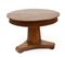 Tavolo con piano tondo, gamba centrale tornita e scanalata, poggiante su base t