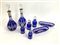 Manifattura di Boemia. Lotto composto da una coppia di bottiglie in cristallo inciso trasparente color blu con ghiere in argento, una coppia di vaschette ovali e quattro bottigliette di diverse dimensioni (lievi difetti)