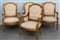 Fornitura da salotto composta da un divano e quattro poltrone in legno intaglia