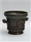 Mortaio in bronzo con anse a forma di teste maschili e fascia centrata da stemma (h cm 17,5, d cm 20) (difetti)