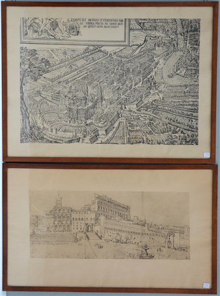 Gruppo di due incisioni di diverse epoche e misure. In cornici (difetti)