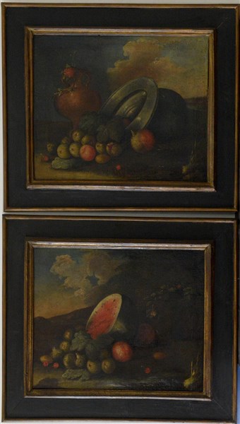 Scuola italiana del secolo XVIII "Nature morte con frutta" coppia di dipinti ad