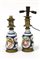 Coppia di lampade ad olio con corpo in porcellana decorata in policromia e dora