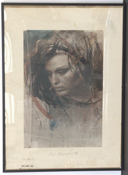 Stampa Arrigoni raffigurante volto femminile (cm 68x48) (difetti)