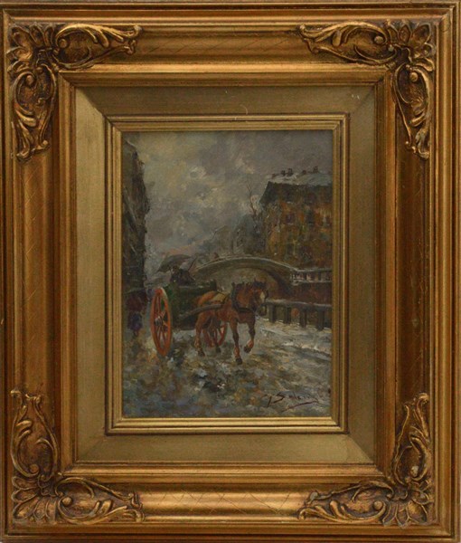 Lotto 173 | Giuseppe Solenghi "Vecchia Milano" olio su compensato (cm 22.5x17) Firmato in ba