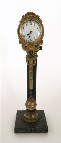 ANONIMO. Pendule mystérieuse del tipo oscillante, con basamento in foggia di colonna dorica, struttura in metallo dorato. Epoca secolo XX.