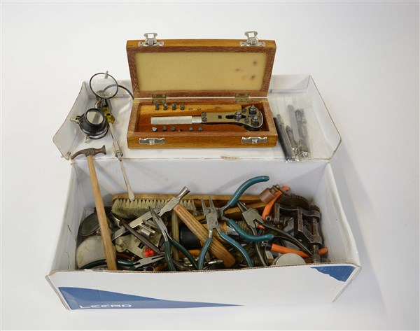 Lotto 285 | Lotto composto da attrezzi da lavoro per riparazione di orologi (difetti)