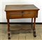 Tavolo da lavoro con cassetto sottopiano. Montanti torniti riuniti da pianetto. Sec. XIX (cm 80x78x54) (difetti e mancanze)