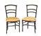 Coppia di sedie in legno ebanizzato, schienale a giorno decorate con filettatur