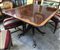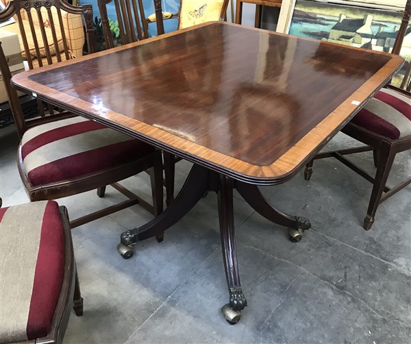 Tavolo a vela inglese con piano rettangolare filettato, sostegno a colonna con quattro gambe desinenti a zampa ferina, munite di rotelle (cm 107x76x86)(difetti)