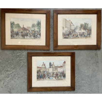 Lotto di tre litografie acquerellate di Adam inerenti ai moti rivoluzionari del