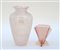 Lotto di due vasetti in vetro stampato rosato. (Vaso in vetro marmorizzato h cm 30; vasetto in vetro satinato h cm 15,5)