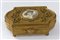 Scatola di forma mossa in bronzo decorato a fregi e foglie di alloro e sul coperchio da miniatura con gentildonna con cappello piumato. Fine secolo XIX (cm 15,5x5x10) (mancanze)