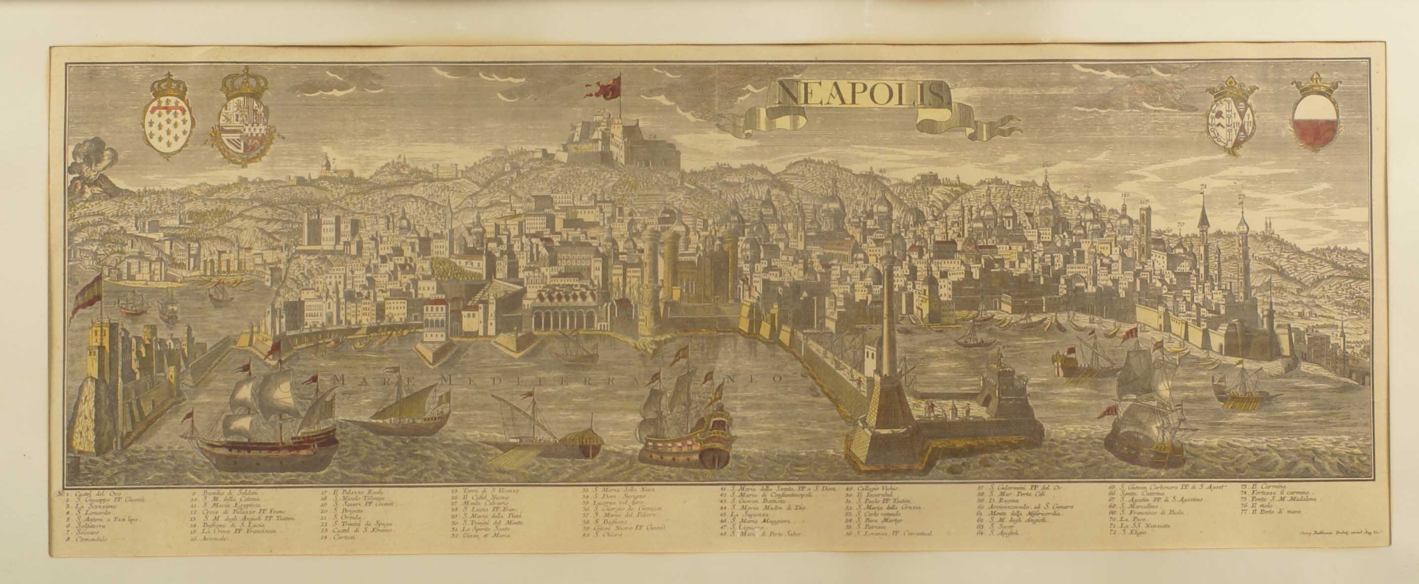 SCUOLA TEDESCA XVIII Sec. Stampa raffigurante veduta di Napoli, entro cornice...