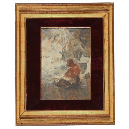 "Studio per Annunciazione" olio su cartone pressato (cm 36x24) Firmato e datato 1903 al retro. In cornice