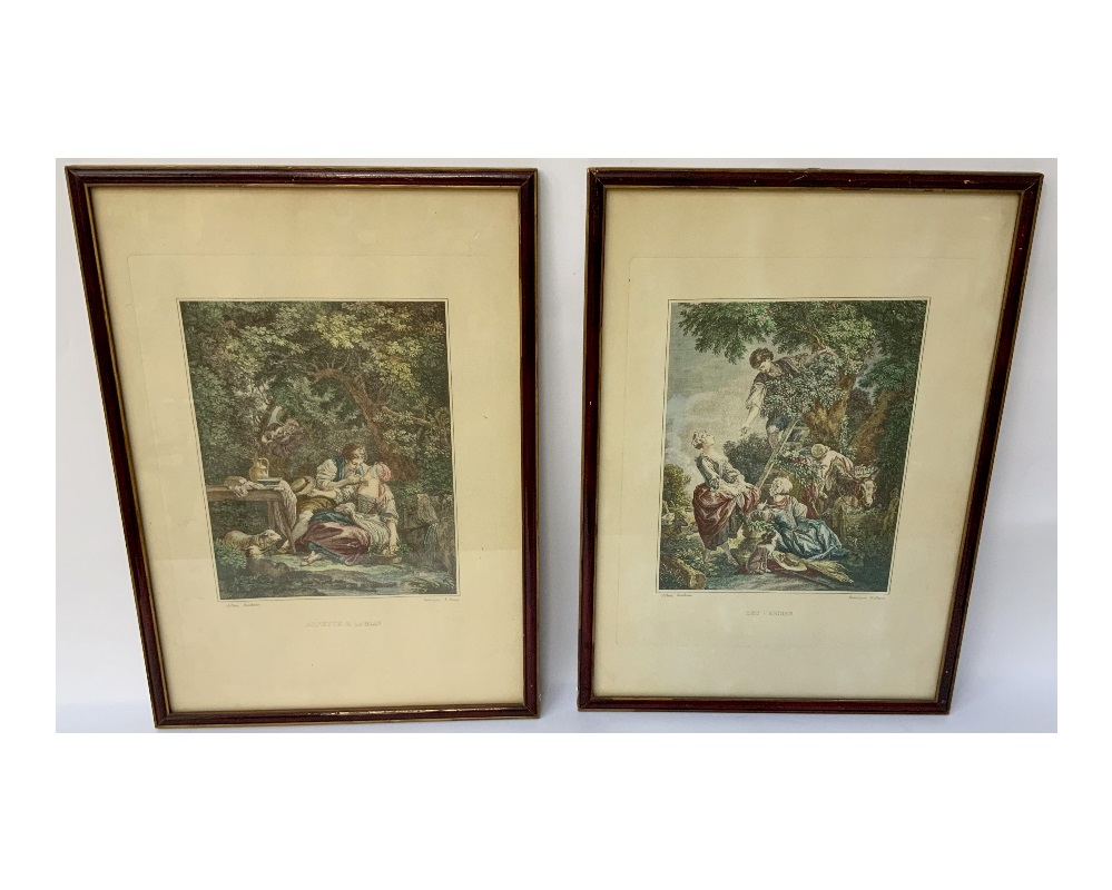 Lotto composto da due riproduzioni a colori raffiguranti sene galanti e due ova