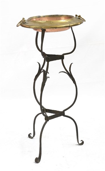 Fioriera a tripode in ferro battuto con vasca in rame (h cm 82) (gravi difetti)