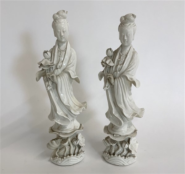 Coppia di sculture in porcellana blanc-de-Chine raffiguranti Guanyin Cina sec.
