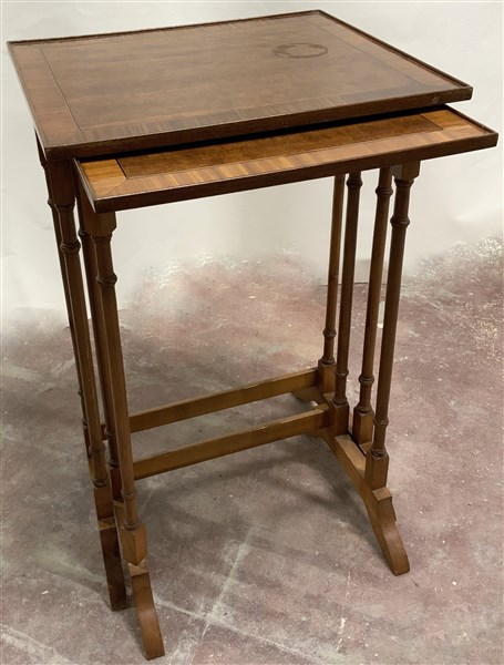 Gruppo di due tavolini a nido, montanti torniti (cm 43,5x67x37)(difetti)