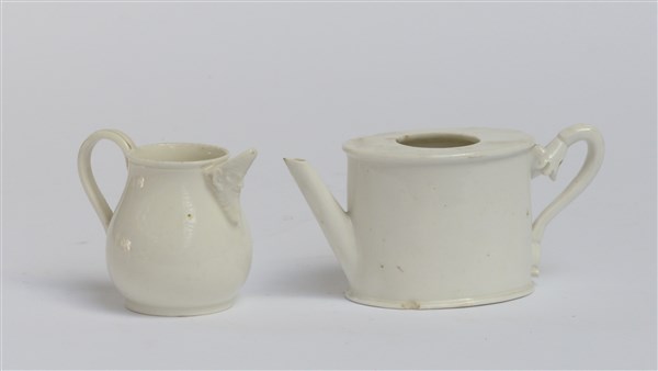 Manifattura di Capodimonte, secolo XIX. Lotto composto da una lattiera e da una teiera senza coperchio in porcellana bianca (difetti)