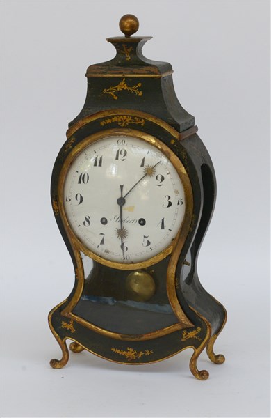 Pendola da camino con cassa in legno laccato e dorato quadrante a smalti e numeri arabi