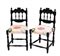 Coppia di sedie in legno ebanizzato con schienali a giorni e montanti torniti,