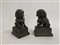 Coppia di leoni buddhisti in bronzo su basi ornate (h cm 22) (difetti)