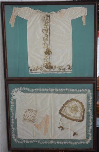 Lotto composto da capi di abbigliamento da bambino entro tre cornici. Impero ottomano - area del Mar Egeo, fine secolo XIX (difetti)