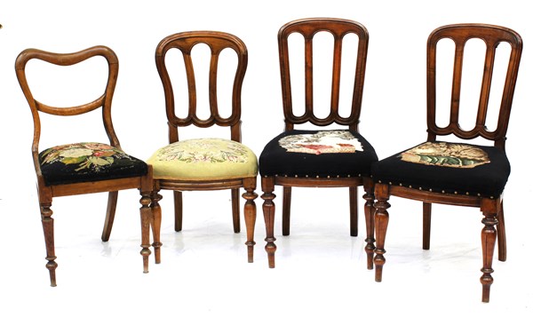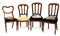 Lotto di quattro sedie con schienali a giorno e sedute rivestite con tessuto a piccolo punto. Secolo XIX (difetti e restauri)