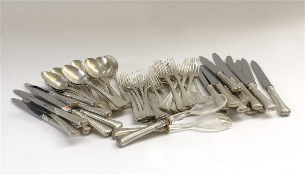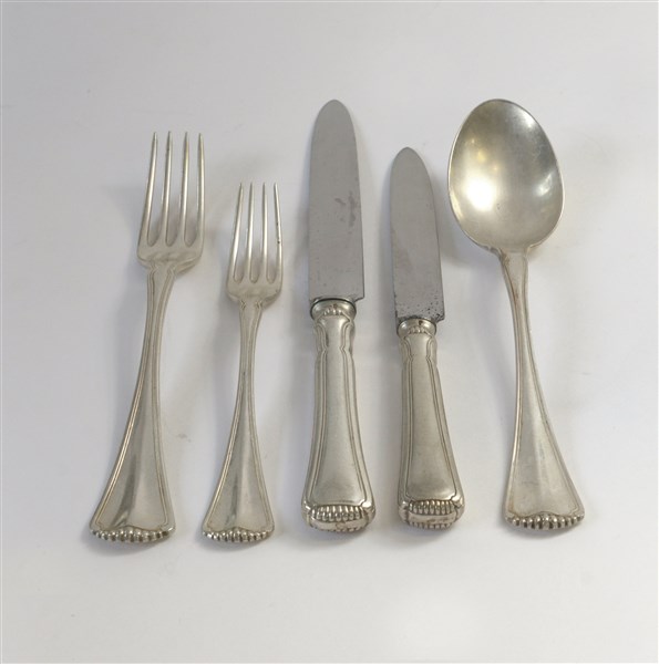 Servizio di posate in argento composto da: dodici forchette, coltelli e cucchia