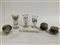 Lotto composto da tre bicchieri, tre porta essenze e una bottiglietta per profu