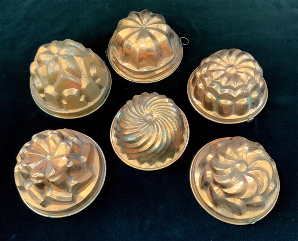 Lotto 593 | Lotto composto da sei forme da budino a torre, in rame (difetti)