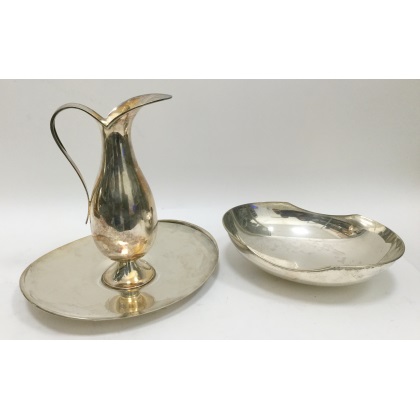 Lotto 601 | Lotto composto da un versatoio con piatto e un centrotavola ovale in argento li