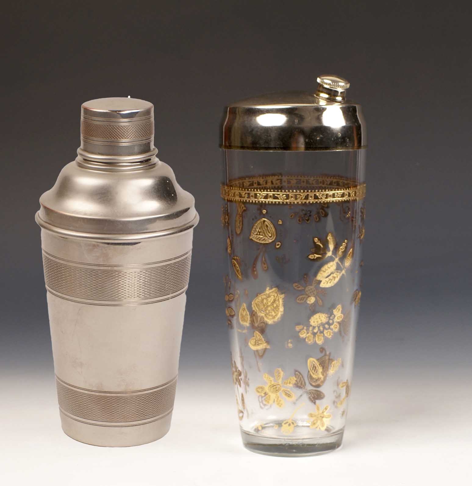 LOTTO DI DUE SHAKER Inghilterra vecchia manifattura Rispettivamente in metallo e vetro, fogge e misure diverse