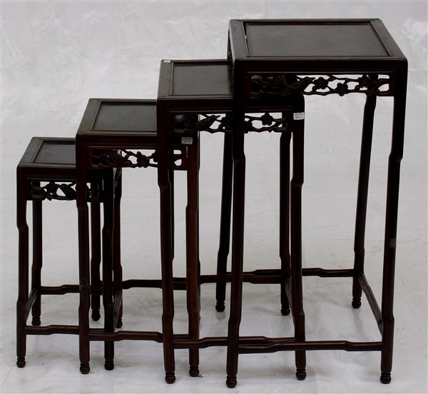 Set di quattro tavolini a nido con grembiali traforati e intagliati. Cina, secolo XX (difetti)