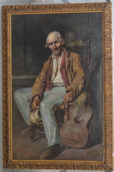 "Il girovago" olio su tela (cm 104x65) Reca firma non coeva in basso a sinistra. In cornice (difetti e restauri)