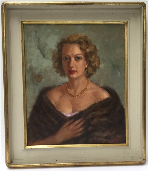 Lotto 666 | Mastellaro "Ritratto di signora con pelliccia e collier" 1953 olio su tela (cm 6