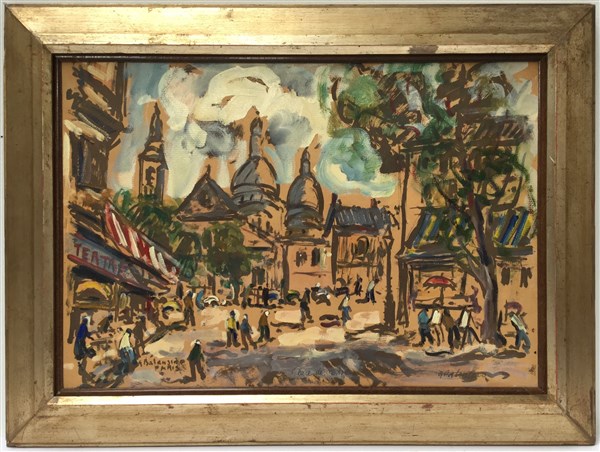 "Parigi" tecnica mista su tela (cm 45x65) firmato in basso a sinistra, in cornice