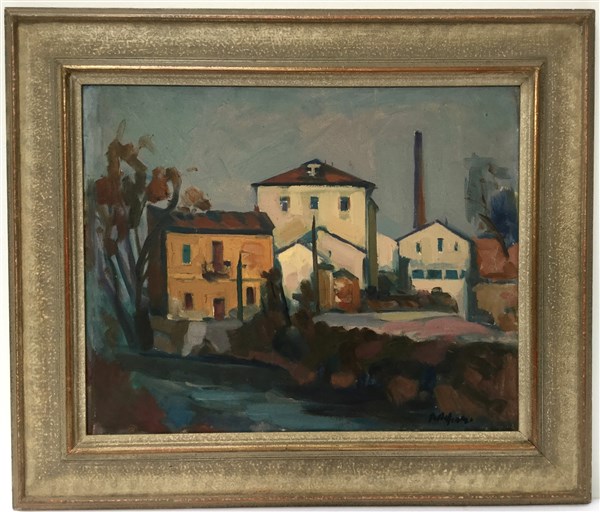 Attilio Alfieri "Scorcio di periferia" olio su tela (cm 40x50) firmato in basso
