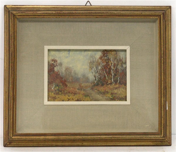 Ignoto del secolo XX "Bosco" olio su faesite (cm 11,5x16,5) firmato in basso a