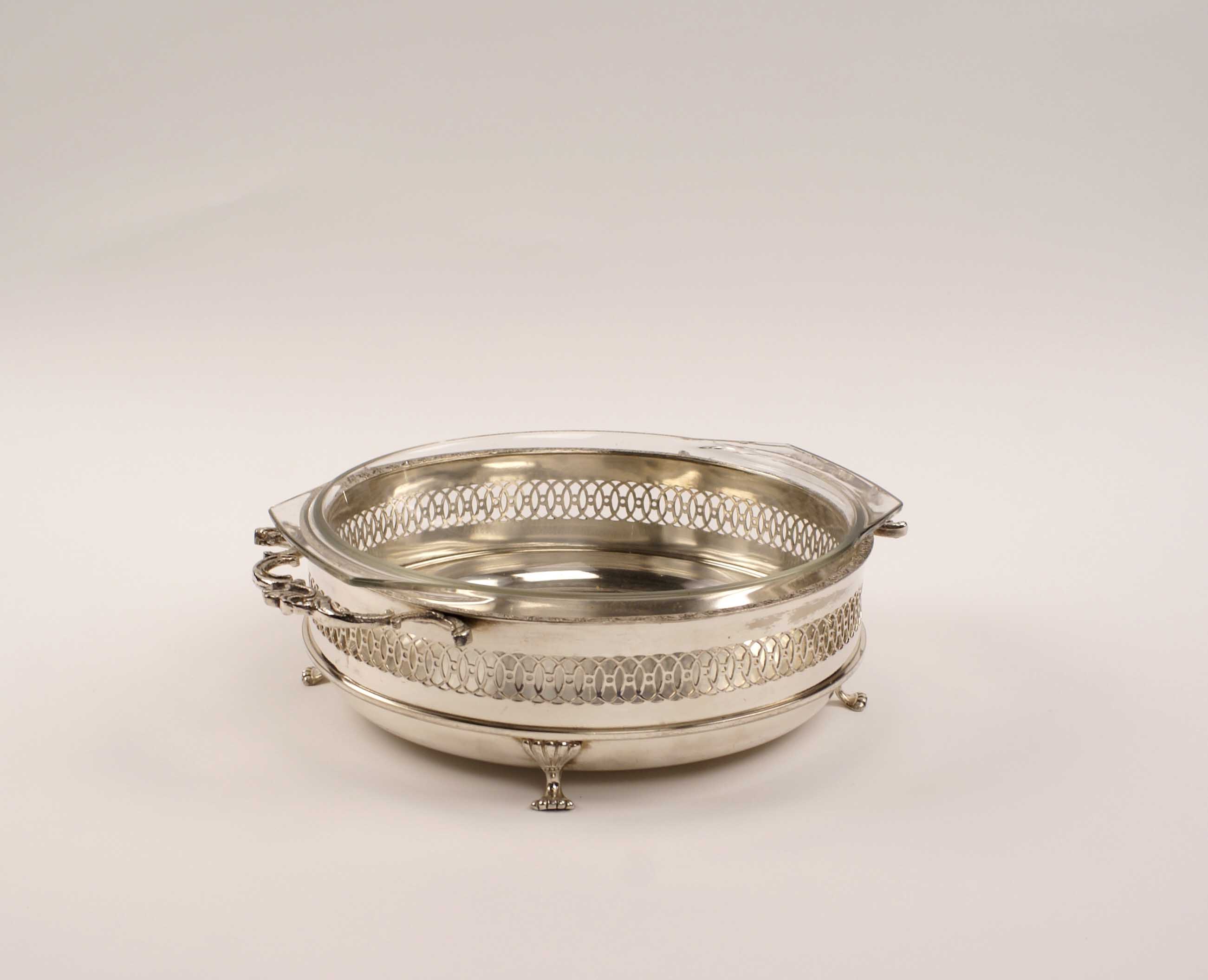 Lotto 663 | LEGUMIERA IN METALLO Francia vecchia manifattura Interno in pyrex D. 33 cm.