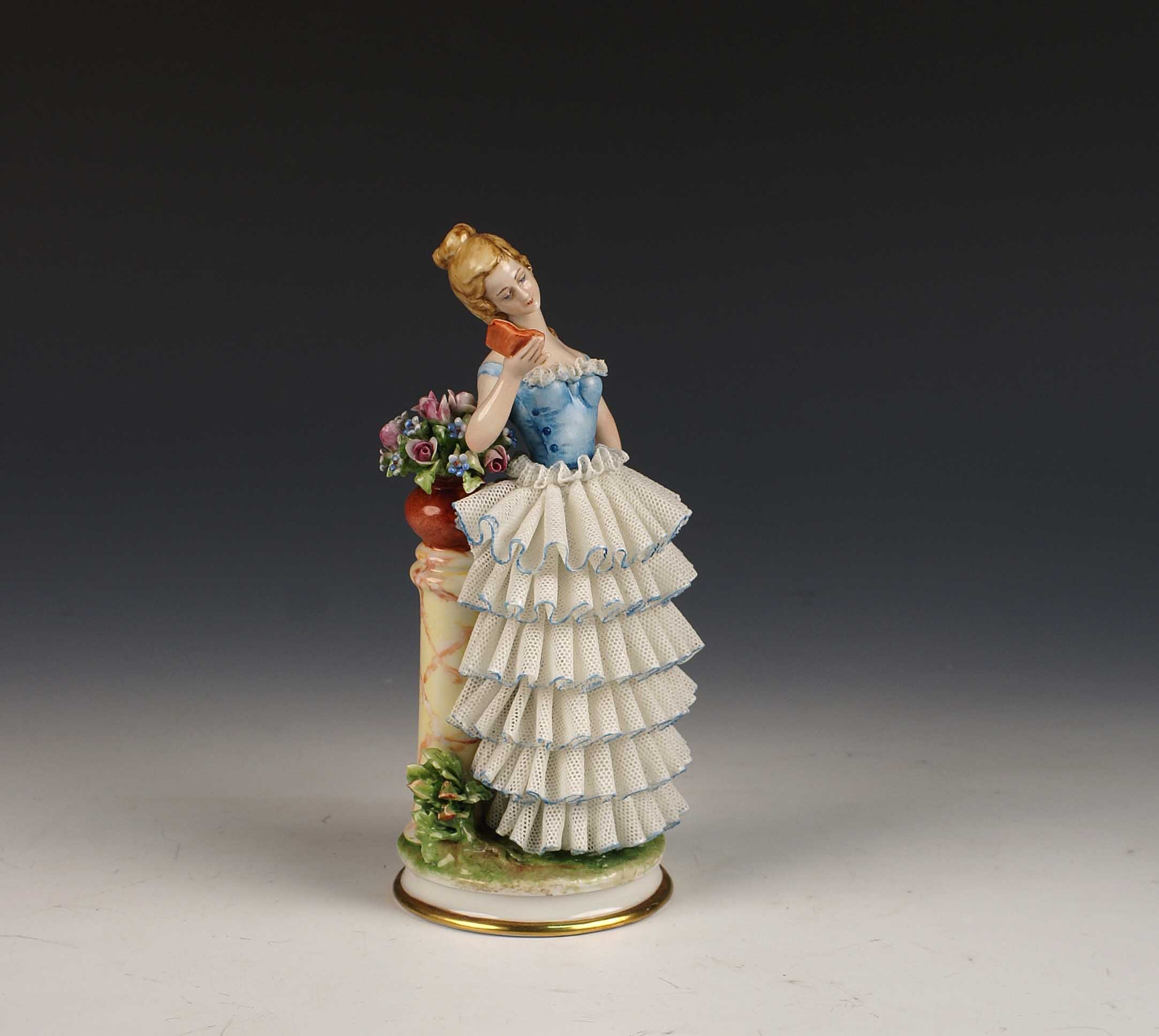 CAPODIMONTE XX Sec. Gruppo in porcellana policroma raffigurante una dama Dim. 18,5 cm.