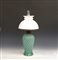 LAMPADA IN VETRO VERDE E TRASPARENTE Murano anni 50/60 Con paralume in opalina bianca H. 47 cm.
