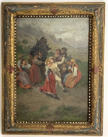 Alessandro Balduino (Attribuito) "Danza popolare" olio su tavola (cm 21x14) Al r