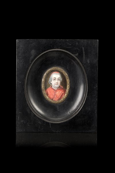 Scuola dell'inizio secolo XIX "Ritratto di cardinale" miniatura ovale (cm 4x3) In cornice ebanizzata