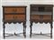 Coppia di antichi comodini in noce con fronte intarsiato e filettato in legno c
