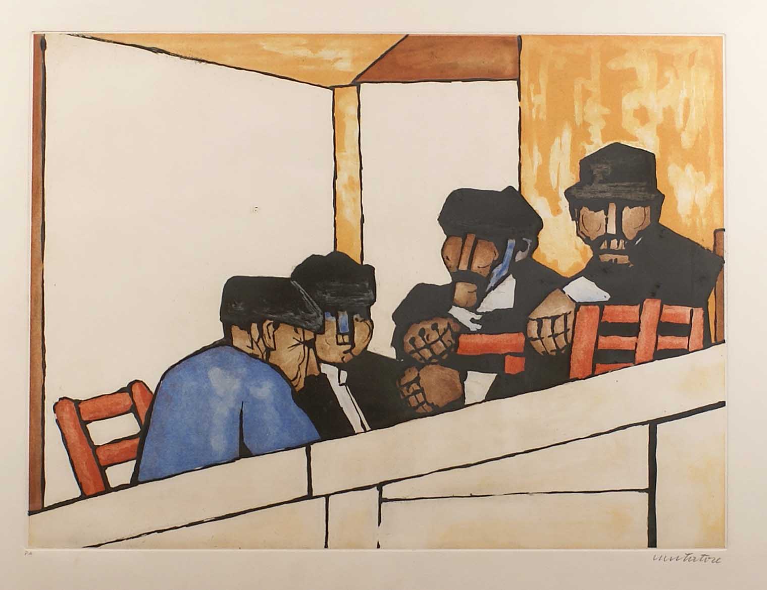 DOMENICO CANTATORE Ruvo di Puglia 1906-Parigi 1998 "Uomini del sud", litografia p.a., firmata in basso a destra, entro cornice Dim. 65x86 cm.