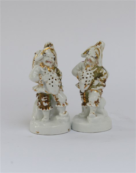Manifattura del secolo XIX. Coppia di figure in porcellana raffiguranti persona