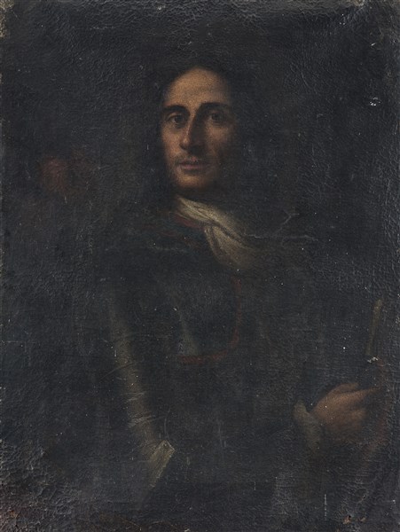 Scuola lombarda dell'inizio del secolo XVIII Uomo in armatura Olio su tela cm