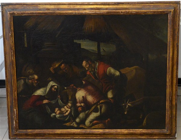 Ignoto, da Jacopo Bassano "Adorazione dei pastori" olio su tela (cm 69x88). Inscritto in basso a destra (difetti)